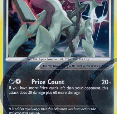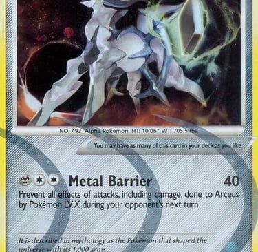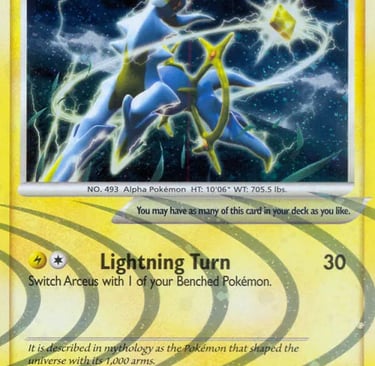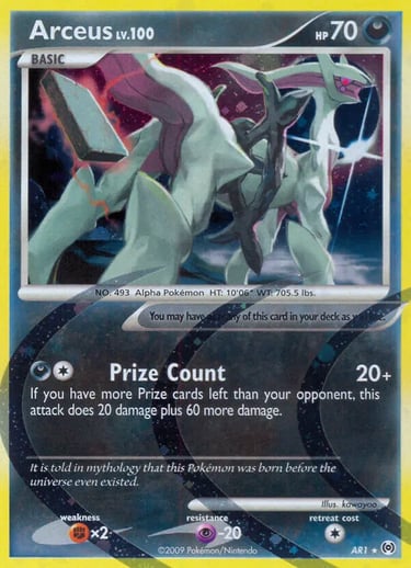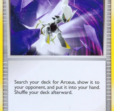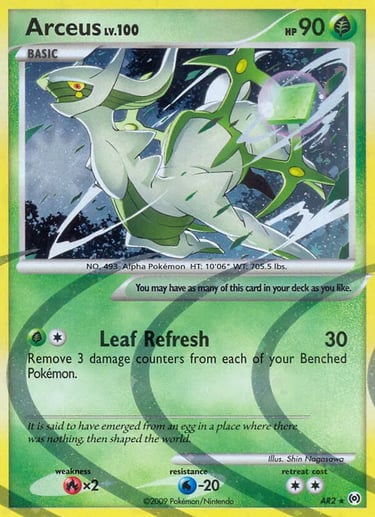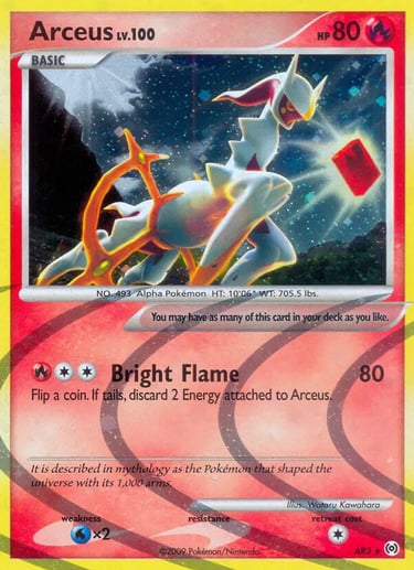 Arceus Lv. X x4 Arceus x4 Arceus Water x2 Arceus Fire x2 Arceus Darkness x1 Arceus Fighting x1 Arceus Lightning x1 Arceus Psychic x1 Arceus Grass x1 Arceus Metal x1 Unown G x2