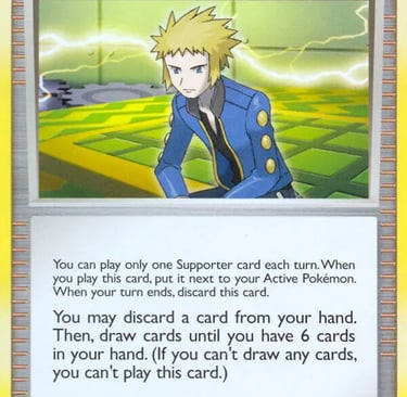 You can treat this guy as a one off Claydol draw or slightly worse Uxie in the form of a supporter. Given how this decks works there’s a good chance we won’t have much of a hand to work with after we play some things and then Volkner becomes the best supporter this deck can ask for. At the same time though he can be risky as if you do have a big hand he won’t let you do much. Oak’s Visit by comparison is more reliable that’s why we favour more copies of that card instead.