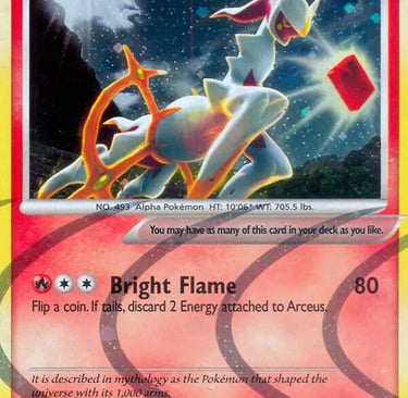 In terms of damage, most Arceus players will agree this card has the most reliable attack you’ll want to copy most of the time if you know you’re going for OHKO. Outside of Meteor Blast, 80 damage is the best you can do and if you’re lucky you won’t even have to lose energies. Bright Flame requires a coin flip and if you get tails you have to discard 2 energies. Unlike Meteor Blast the 80 damage is consistent regardless of what you flip but at the same time without a x2 weakness it misses OHKOs Meteor Blast is able to get. This is why I say if you can’t get a guaranteed OHKO with another attack might as well try your luck with Meteor Blast. Fire type is also super important to hit Dialga G Lv.X which is a tough pokemon in general, but also shuts down our poke-bodies. That’s why the second copy is important here, if you levelled up already you need this fire Arceus without a Lv. X on otherwise you can’t hit it for weakness. Good news is we do enough damage to get a OHKO on it 99% of the time.