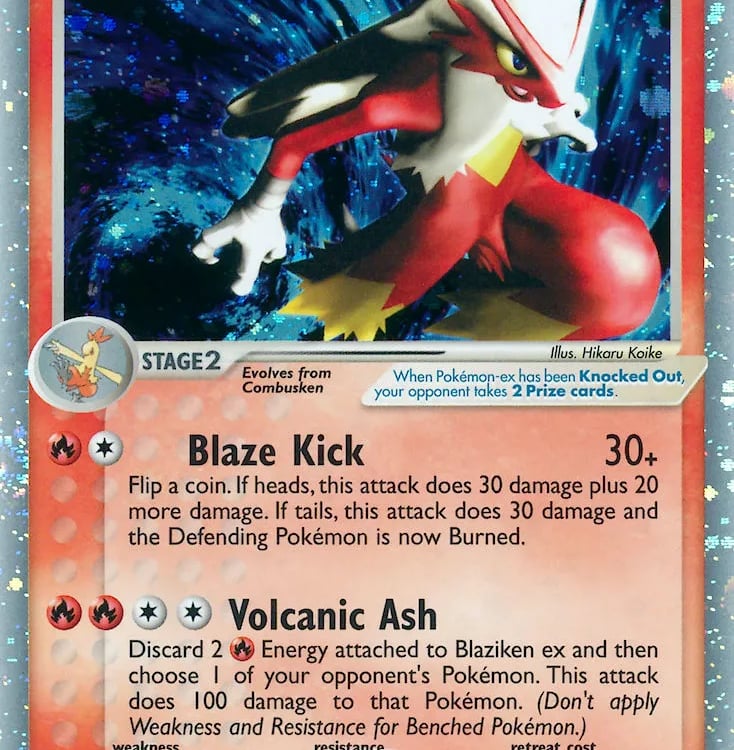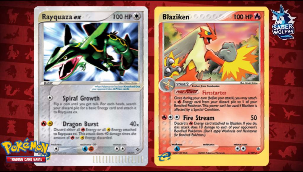 When it comes to favourite starters in general there’s no question the Swampert line is always going to be my all time favourite but in terms of cards Blaziken has my heart. This is largely thanks to this awesome deck we’re going to be showcasing here from the ever beloved original ex era (2003-2007 formats). If you ever wondered what was the original foundation of direct energy acceleration from the discard pile without any gimmicks using a poke-power or ability, this is it. The original holographic Blaziken from the first gen 3 set, ex Ruby and Sapphire came with this effect, Firestarter and with it an effective way to accelerate fire energies that were already discarded. While obviously you can power up any pokemon that makes use of fire energies a few key ones make for the strongest candidates. The original Blaziken ex is one of these pokemon and this card is the other reason why I hold Blaziken cards in such high regard. The other is the original Rayquaza ex that came out even before Blaziken got its first ex. This deck focuses around these pokemon. The following list is one of my versions of this deck and an explanation of all my card choices: