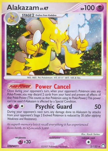 Even in these last 11 years I still can’t think we received any other card quite like it. When it comes to the effect itself, it wasn’t just unique, it was actually very useful too. Naturally negating poke powers is good and the dynamic of gaining this effect during your opponent’s turn had its own merits. Some players would end up teching this card in decks like Cursegar and other decks with Rare Candy for this poke-power, but alas working as a tech was its only use. For the main card in its own deck, Alakazam had low HP for a stag2 in DP and Psychic Guard was a weak attack outside of blocking 30 damage from other stage 2 pokemon.