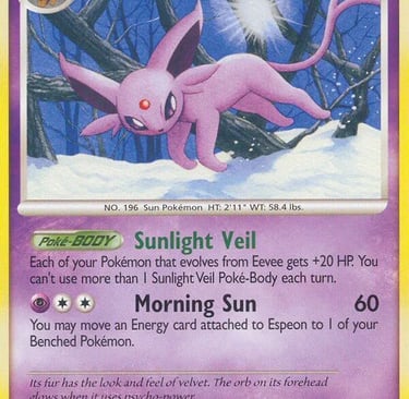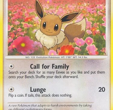 This is definitely the Eevee you want to favour in any Eeveelution deck in the DP era. Perhaps if the rules and format were different the Rising Rivals one would be a great option to, seeing as it can grab you Eeveelutions instead of Eevees but that's only a "what if". Running 4 of this Eevee is the best choice as it's a basic pokemon fetcher on the same league as Pachirisu from Great Encounters. The main difference is that you can only grab other Eevees but that's hardly a condition to pass up on such a useful effect at the start of the game. We want to get our Eevees on the bench anyway to evolve into Leafeon and Espeon and Call for Family doesn't only ensure consistency but safety as well against turbo decks that may go off playing second.