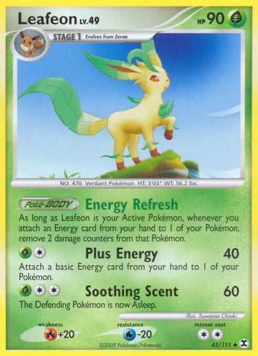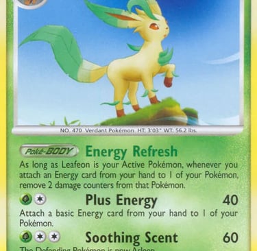 Everybody loves Eevee and at least some Eeveelutions right? Well, maybe some exceptional rare pokemon fans don’t but the majority of us do. Otherwise Nintendo and The Pokemon Company wouldn’t be giving them that extra attentive treatment. All you have to do is look at all the Eeveelution cards, how frequently they come out and all the other tcg and non tcg merchandize surrounding them. A good number of OG veteran players may tell you that Eeveelutions weren’t all that powerful in the Diamond and Pearl era; even if you factor in the whole of gen 4 with the HGSS sets included. That’s not entirely false if you just want to consider the most top tier decks (many of them SP) but not entirely true either. Being the passionate fan and researcher of the Diamond and Pearl tcg era, I’ve come up with one Eeveelution deck that shouldn’t be underestimated. It is based on what was one of the 2 new evolutions of Eevee in this era, Leafeon. It is my belief that a deck based on Leafeon is the strongest and easiest to pull off out of all the other Eeveelutions in the era. Below is the deck list I thoughtfully tested along with my usual comprehensive explanations: