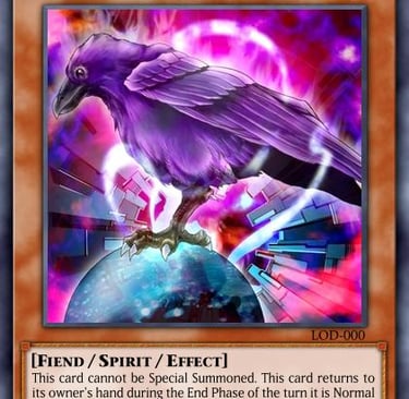 This demonic bird falls in the category of the spirit monsters introduced in this set, and even with all the limitations this card shared with the other spirit monsters it wasn’t enough to balance out a Time Seal on foot. That is essentially what this card is, despite the weak stats and being a spirit, if this card inflicted battle damage your opponent would have to skip their draw phase. An absolutely mind boggling effect considering that if you managed to corner your opponent or saw an opening to immobilize them you could continuously skip their draw phase with this card and lock them out from doing anything. A slow and painful impending demise as you gaze upon this purple bird’s cold expression being helpless to do anything.