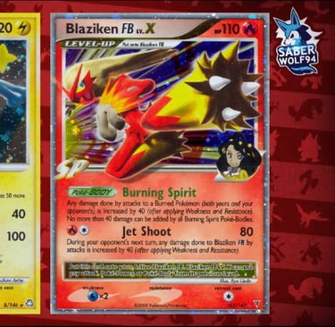 Even without the boosts though Luxray’s attack are pretty solid an can be used together to get a 2 hit KO on most pokemon anyway. Plasma attaches a lightning energy from the discard pile to Luxray helping go for Shock Bolt next turn without having to commit your manual attachment and this helps you maintain some energy presence on your field. This card still wouldn’t be considered a fast attacker but as long as Luxray survives to use at least one Shock Bolt then it did a pretty good job. With 120 HP a fresh Luxray will usually be able to take a hit for you to get a 2 hit KO and the discarded energies won’t matter after that. The free retreat is also a great asset here and helps us get into Blaziken Lv. X easier.
