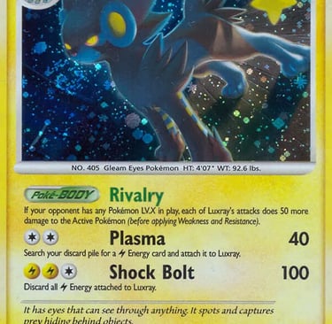 Legends Awakened Luxray is one of the strongest counters to most Lv. X pokemon in the era thanks to Rivalry. This poke-body will boost its damage by a whopping 50 if your opponent has any Lv. X pokemon in play, whether in the active spot or tucked away on the bench. This increased damage applies when you hit any pokemon too, not just a Lv. X. Many of the strongest decks in the era feature Lv. X pokemon as their main cards, particularly SP decks. Imagine the decision a Luxchomp player will have to make when coming across this card. Knowing that they’ll be giving you an insane boost by just playing their main pokemon or going through the entire game without them at all. That would be a nice feeling for you right? With Rivalry in effect this turns Plasma into an impressive 90 for 2 and Shock Bolt can get a OHKO on most pokemon dealing 150.
