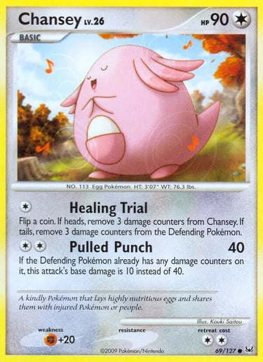 Pulled Punch is enough of a reason to have this Chansey as opposed to the one from Mysterious Treasures. The 10 fewer HP doesn’t make much difference here as 90 is still fantastic on her. The attack is situational, but it’s still a great move to use against Garchomp C Lv. X after it uses Dragon Rush.