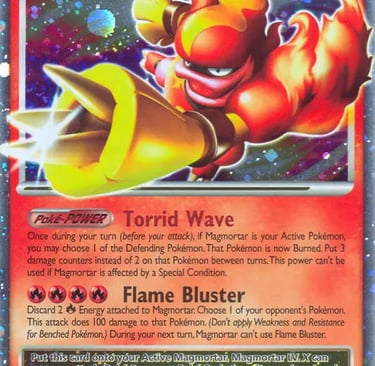 This Lv.X is one of the primary reasons to use Magmortar. Flame Buster is the main attraction here; an 100 damage snipe for 4 fire energies and you also have to discard 2 of them afterwards. Costly, but accelerating fire energies for costly attacks if what our deck aims to do. So, setting the cost drawback aside and Magmortar not being able to use Flame Buster on consecutive turns, this attack is very good. 100 damage will put in the work on many pokemon and working as a snipe is beautiful. Just think of all the key pokemon on the bench you can get rid of instantly. Claydol, Uxie, Bronzong G and any other basic SP or un-evolved pokemon. When you can do this you also get to play around Fainting Spell on Stormfront Gengar buying you at least another attack before the potential worst case scenario. Torrid Wave isn’t as useful as the attack but it is a way to deal free damage on your opponent’s active pokemon through burn. If they get the tails you also deal 3 damage counters as opposed to 2.