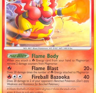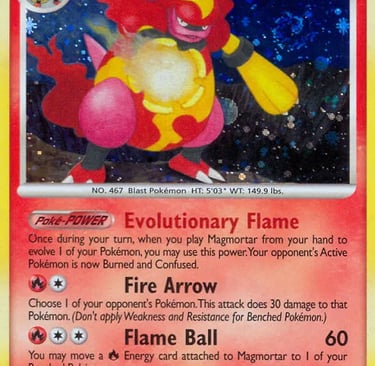 If one is familiar with Mysterious Treasures Typhlosion, they would think it’s easy to make a Magmortar deck in the Diamond and Pearl era. “All you have to do is pair those cards with Typhlosion and you have a deck” While this isn’t entirely untrue players and deck builders that have dedicated themselves in such cards would able to tell you that no matter how you’d go about that pairing you’ll run into different problems. Trying to use a fast and thick trainer line with Rare Candies and pretending trainer lock and Spiritomb don’t exist will get you in trouble against a lot of relevant decks. On the other hand trying to go the Spiritomb route yourself or relying on Broken Time-Space to evolve your pokemon eats up too much space for this kind of deck giving you other issues. While depending on the decks you play both deck building approaches can work the reality is to have a consistent and efficient list for this deck isn’t easy. We’re trying to evolve into multiple different pokemon while trying to get fire energies in the discard pile too. Below is a list of one of the many versions I tried with this deck along with explanations for their inclusions and the appeal of Magmortar in the first place:
