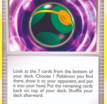 Dusk Ball usually isn’t used by most serious players because it doesn’t guarantee a pokemon and will also be shut down by trainer lock. However, I like one copy in this deck and some others because we have a lot of pokemon; 24 to be exact. This gives you good enough odds to always grab something with it especially when it gives us a way to get evolution pokemon without using Bebe’s Search, a supporter card, including a Lv. X pokemon. These are the reasons why I like it.