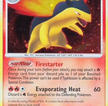 Firestarter Typhlosion gives us fire energy acceleration from the discard pile and this is perfect to power up Magmortar and other pokemon easily and mitigates the costs of Flame Buster. In fact, if it wasn’t for the inclusion of this card we’d be lucky to use Flame Buster even once in a whole game. 3 copies of this card is the best number for enough consistency and be happy if you can get out and keep 2 of them on your bench during the game. Unless you didn’t get any other support pokemon down or your opponent KOed them, you won’t have the space to have a bunch of attackers and all 3 Typhlosions out most of the time. Its HP is on the lower end of stage 2 pokemon but nevertheless this can still be an additional attacker in the deck and maybe somewhat of a counter against water decks which we’re weak to. That’s because Evaporating Heat discards a water energy on the defending pokemon. Another cool thing to keep in mind is that this effect doesn’t specify basic water energies, so other random pokemon using Multi Energy, Rainbow Energy or even SP Energy will have their energies discarded.