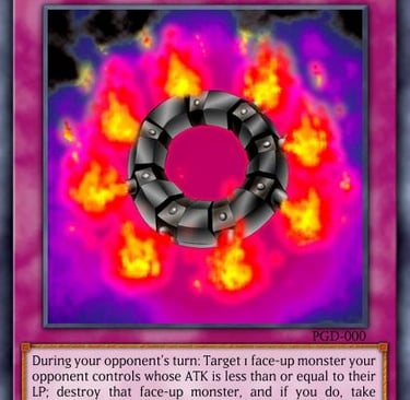 In some ways this is a trademark Kaiba card from the animated series, although not as much as Crush card Virus. Still, this card is as simple as it is extremely deadly. The version shown here is much weakened when they gave it an errata but its original effect can be compared to a much more extreme and flexible Magic Cylinder. You simply target any monster on the field including yours, destroy it, and inflict its attack as direct damage to both players. Just like other swift traps like Time Seal, much of this card’s power comes from its chain-ability, it doesn’t have to be the battle phase like Magic Cylinder, or even on a summon like Bottomless Trap Hole. Since the damage depends on what monster you destroy, there’s no limit to its damage potential, combine this with the ease of pulling off its effect and you have one of the most extreme one card finishers this game has seen.