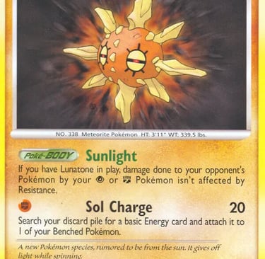 Solrock is not as good as Groudon as a standalone card but running this card in high numbers along with Lunatone grants us some different utilities. Solrock is also a method to power up Rhyperior and any other pokemon with its attack while also putting some damage. If you can get at least 2 attacks with Solrock and grab 2 energies then it fulfilled its role well enough. It goes without saying but this card is your ideal starter if you have a few other basic pokemon on the bench to work with. The Sunlight poke-body won’t offer that much value compared to a different effect but ignoring fighting resistance on our opponent’s pokemon is still better than nothing. You need to have Lunatone out for this effect to work but that’s exactly what we aim to do.