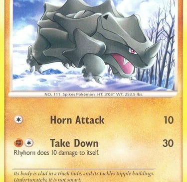 As I did with Rhydon, in the past I favoured running 4 of SV Rhyhorn. The decision was easy, more HP and a 50 for 3 attack is something usable in a desperate but unlikely game state. Once again though, even though you’d rather not open with Rhyhorn, if you do with the DP one you can start attacking instantly, even if it’s just 10 for 1. If things go well you can evolve into Rhydon next turn, attach a second energy and put even more pressure at the earliest stages of the game. 30 for 2 with Take Down is also usable at the start of the game and will limit Spiritomb into only one Darkness Grace evolution before getting killed. This will likely only be a dream against Kingdra, Beedrill, Blaziken FB and any other fast and hard hitting deck but against many of the strong slower decks that little bit of an advantage can make some difference. Rhyhorn has a lightning resistance so it survives one of Luxray’s attacks anyway.