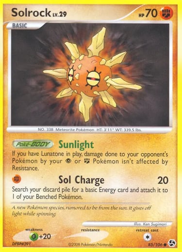 Even if you have the Lv. X on you won’t be able to use those attacks either. Unless you’re gonna to burn 4 energies to retreat your best remedy is using a Switch or another switching outlet so make sure you have one in hand ready. Do I need to repeat what I said about Upthrow again? This attack also ignores resistance not just weakness but that doesn’t really matter once we have a look at Solrock in this deck. The inclusion of this card isn’t necessary and can also backfire but I still decided to include it instead of running 3 Supreme Victors Rhyperior.