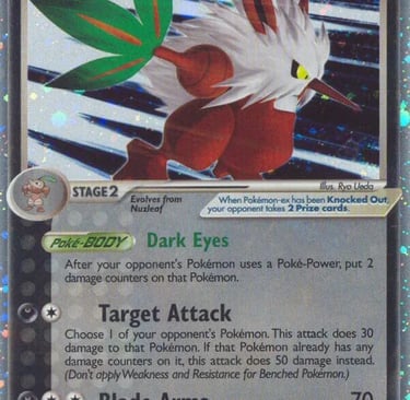 There isn’t any good way to incorporate other Shiftry cards into the deck without sacrificing consistency but if you’re willing to swap one Shiftry ex or just another card you can include a regular Shiftry stage 2 with this ex Legend Maker one as a good candidate. This card’s poke-power will allow you to scoop up one of your evolution pokemon (except Shiftry) and all cards attached back into your hand and can also be used as non pokemon ex attacker; stronger than both ex Dragon Absol or Holon’s Magneton with Cross-Cut dealing 70 damage to any evolved pokemon. The drawback with including a regular Shiftry in place of Shiftry ex is your Dark Eyes spread won’t as efficient or consistent having one less Shiftry ex in the deck but there are obviously some niche benefits to having this card in the deck too, such as if you don’t play against a poke-power heavy deck, multiple Dark Eyes poke-bodies won’t mean as much. Having said that this is a very particular occurrence though, this is why it’s probably better to go all out with Shiftry ex.