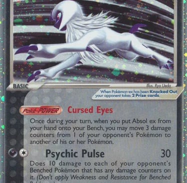 Absol ex serves as an additional attacker that combos well with Shiftry ex’s capable damage spreading. It’s Cursed Eyes poke-power also gives you the chance to manage some of those damage counters letting you move 3 of them from one of your opponent’s pokemon to a different one enabling for some additional strong combos and helping not waste any excess damage on their pokemon.