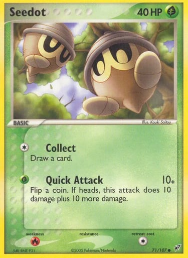 No Seedot in the ex era goes over 40 HP but out of the ones available this one from ex Deoxys lets you draw cards with Collect and will at least aid you in gathering your pieces if you have to attack with it.