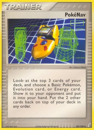The idea with PokeNav is similar to Master Ball; this is a card that can grant us any pokemon or any energy card and arrange the left out cards on top of the deck how we see fit. Once again, there is a chance you won’t reveal anything to grab with this card; but this loss is small as this is only a trainer card and also combos with Porygon2 like Master Ball.