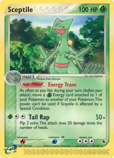 If it actually had a better attack or better stats I wouldn’t put both of these cards together in spite of Energy Trans as it’s just simply not the same ability in both eras. Because moving energies around is good, it makes these cards some of the better Sceptile cards by default but it’s just too bad they couldn’t be as successful as other pokemon that had a similar effect, like Aromatisse or Weavile GX for example.