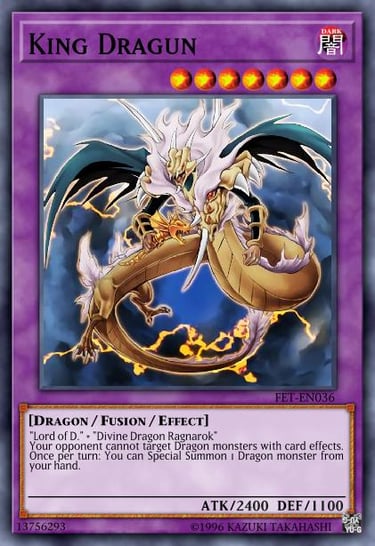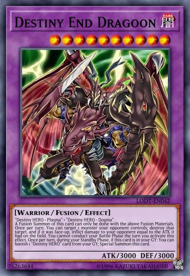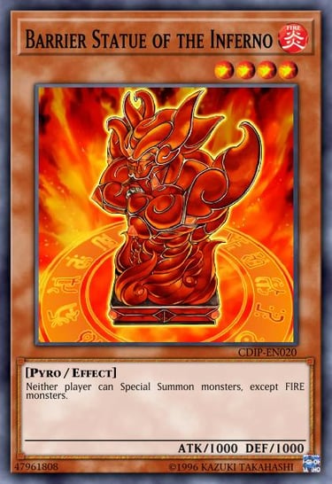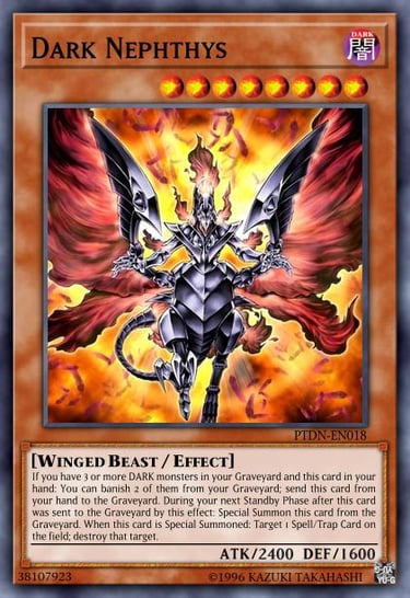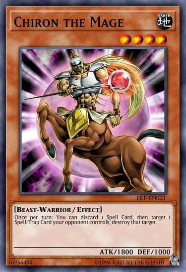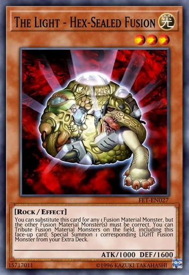 Some of its key cards are: Sacred Phoenix of Nephthys, Granmarg the Rock Monarch, Chiron the Mage, Armed Samurai-Ben Kei, Golem Sentry, the Light, Dark and Earth Hex Sealed Fusion cards, Rescue Cat, Gatling Dragon, King Dragun, A Feather of the Phoenix, Lightning Vortex, Swords of Concealing Light, Fulfilment of the Contract, Re-Fusion, Threatening Roar, Phoenix Wing Wind Blast, Good Goblin Housekeeping, D.D. Dynamite, Deck Devastation Virus.